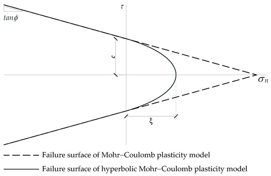 Failure surface of hyperbolic Mohr–Coulomb plasticity model illustration.