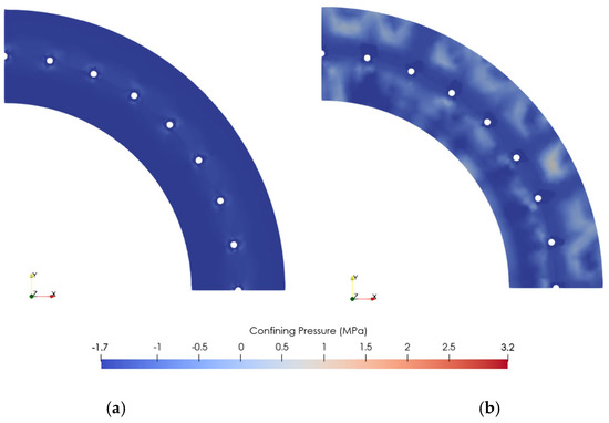 Confining pressure of the spun pile. (a) 0 years. (b) 75 years.