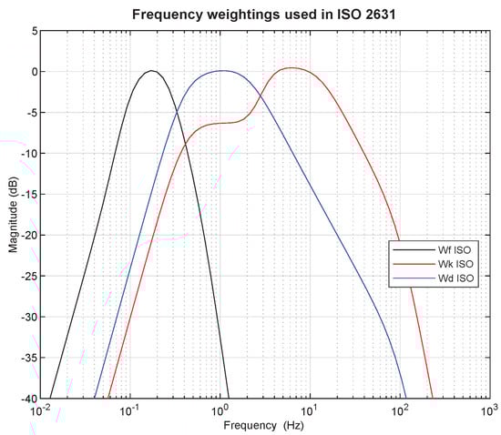Acceleration filters proposed in the ISO−2631 standard for comfort.