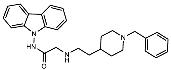 Structure of 2-((2-(1-benzylpiperidin-4-yl)ethyl)amino)-N-(9H-carbazol-9-yl)acetamide (12).
