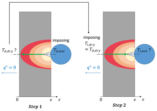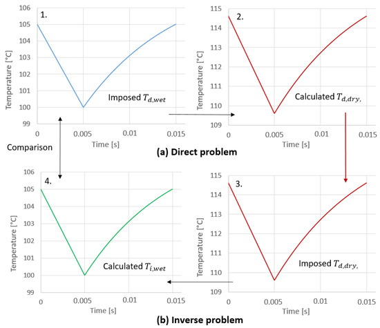 - In the second step, the associated inverse heat conduction problem is studied by solving the diffusion equation for a given couple of boundary conditions expressed on the dry side of the plate: