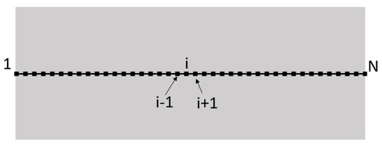 After meshing the plate with a regular mesh size along the axis (see Figure 12), Equations (13)–(15) are solved by finite differences using a second-order centered scheme for the Laplacian (17) and an implicit scheme for time dependence (18).