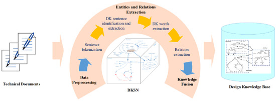 The design knowledge network provides an effective technical means for the acquisition, rapid retrieval, and understanding of design knowledge. However, it is still an issue regarding how to build a DKN to realize the acquisition, storage, and sharing of DR knowledge in technical documents.
