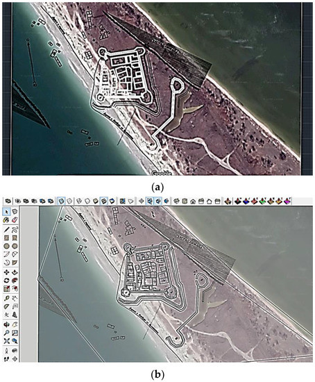 However, superimposing ancient maps and schemes on the created ones can also be applied. In this case, the topological and geodetic data were based on the scale using corresponding software (e.g., ArchiCAD, Revit).