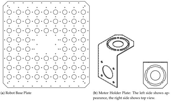 Appearance of the robot’s parts: (a) shows the board that serves as the foundation. (b) shows the plate to hold the motor.