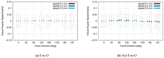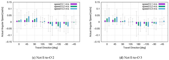 The robot’s actual angular speeds during each travel direction and command speed with 4-wheeled Omni wheel robots.