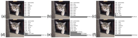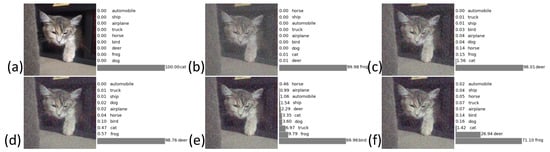 28] and the proposed one. As noted earlier, at 1% noise, the recognition accuracy did not differ by a large amount, from which it is concluded that it does not always make sense to remove noise of such intensity from the image. A noise intensity of 10% had already significantly spoiled the image—the neural network showed the class “deer” for this image even after cleaning with known methods. At 25% noise, the neural network showed similar results, except that the proposed method outperformed the next hypothesized category by only 17.1%. Noise with an intensity of 50% or more could not be completely removed for high-quality recognition by the system, for all cleaning methods could not cope with such an intensity, but such a dense noise very rarely appears when transmitting images. In general, when cleaning by the proposed method, the neural network recognized the image cleaned by the proposed method as being better by 13.62% and higher.