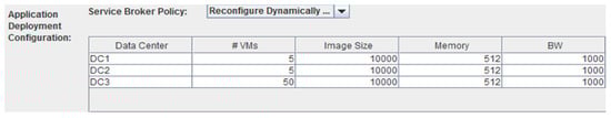 The application deployment configuration of Data Centers 1 to 3 based on reconfiguring dynamically with load SBP.