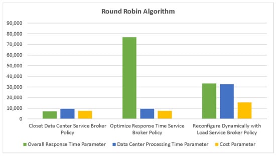 The analysis of the performance parameters of RR based on 3 service broker policies.