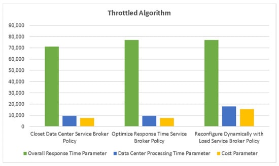 The analysis of the performance parameters of the throttled algorithm on 3 service broker policies.
