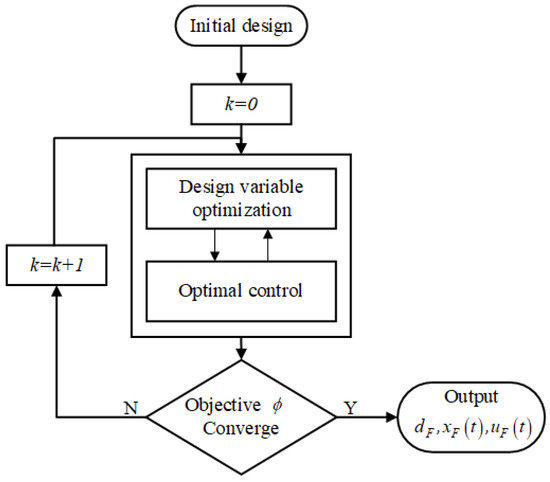 An MDSDO problem is commonly solved using the co-design framework in MDF, which is a two-loop structure flow in which the outer loop is design variable optimization and the inner loop is control optimization [31]. The flow chart of the co-design framework is shown in Figure 1.