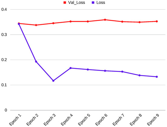 Through Figure 15 it is possible to see the evolution of the model learning over the 9 epochs, and that it obtained the best results in epoch 2, since then the model started over-fitting.
