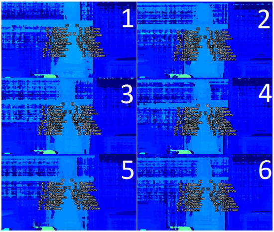 Once the offset of the camera alignment with the robotic arm was calculated, the reference points were predicted. Using the previously created socket, the robotic arm was moved (with a velocity of 2 m/s and an acceleration of 2 m/s ) to the following joint positions using the movej() function [36]: base = 90; shoulder = 0; elbow = 0; wrist 1 = −90; wrist 2 = 90; wrist 3:240;