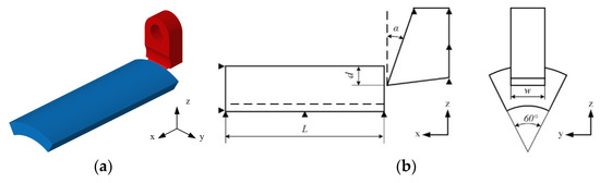Finite element models based entirely on real specimens usually require millions of nodes or elements, resulting in high computational and time costs for thermal–structural coupling analysis. As the core components of the cutting energy-absorbing structure, the interaction between the tool and the energy-absorbing tube undertakes nearly all amounts of energy absorption. Therefore, the tool and part of the energy-absorbing tube are selected as the research objects in this paper. A thermal–structural coupling finite element analysis model of the tool and tube is developed by using the commercial software LS-DYNA, as shown in Figure 4a.