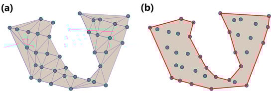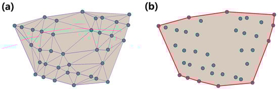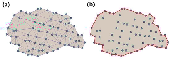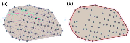 Triangulation generation and boundary extraction of sparse point cloud based on Graham algorithm: (a) represents triangular mesh generation; (b) represents boundary extraction.