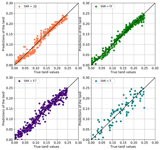 - Finally, the PCA preprocessing showed best prediction error results for both estimated parameters, with for and for . The performed tests indicate that simplification of the data by feature vector reduction was achieved. Therefore, the training time is reduced (by to times compared to the STFT on multistatic setup data) along with trainable weight parameters (by to times). The PCA method also allowed us to train the neural network model with the same number of training parameters for every setup, as the number of principal components remained the same. The method itself was implemented via the scikit-learn machine learning library to perform such dimensional reduction. The PCA class was used to fit and transform the raw input data.