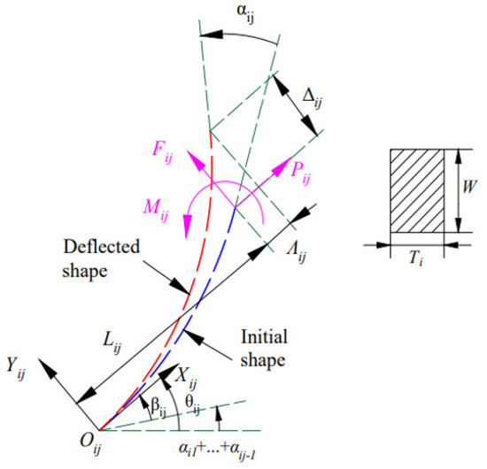 The force–deformation relationship of a single flexible segment can be obtained from Equations (1)–(9).