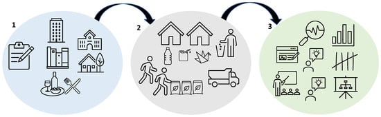 The intervention of district municipalities added to the implementation of management instruments allow obtaining data on solid waste from homes. For this, a sequence of steps based on the Kunitoshi Sakurai methodology was designed, where three levels were outlined (see Figure 2) [34,36].