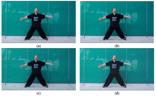 In practical applications, images may be contaminated by different noise sources. Therefore, we enhanced the data of the sample image, added different noise processing as shown in Figure 9, and then used NEW-STGCN-CA to identify the actions in the image. The recognition effect is shown in Figure 10. The experimental results show that the recognition effect of NEW-STGCN-CA in raising arm movements in tai chi movements is accurate under the interference of noise.