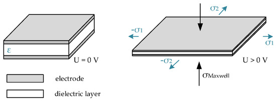 Due to this design, a mechanical actuating force is generated. The effective mechanical pressure, called Maxwell stress along the thickness direction, is given by the formula (1):