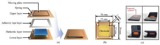 - Loew, P.; Rizzello, G.; Seelecke, S. A novel biasing mechanism for circular out-of-plane dielectric actuators based on permanent magnets. Mechatronics 2018, 56, 48–57. [Google Scholar] [CrossRef]