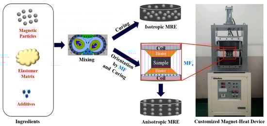 Diagram showing the production process of isotropic and anisotropic MREs (source: [104]).
