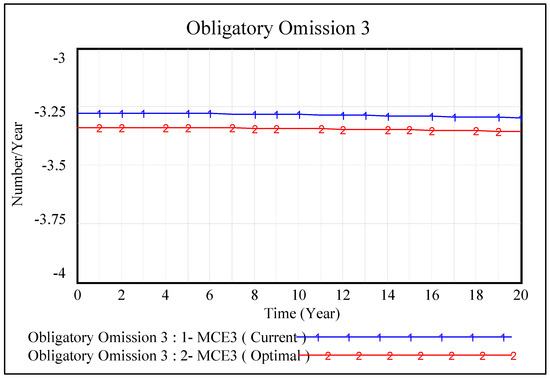 Comparison of the effect of the current and optimal amount of the obligatory omission rate 3 on the current variable of obligatory omission 3.