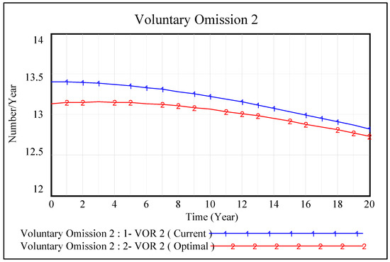 Comparison of the effect of the current and optimal amounts of the voluntary omission rate 2 on the current variable of voluntary omission 2.