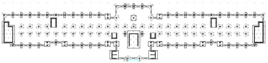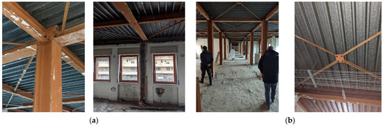 The weight of the metal members and the reinforced concrete walls are automatically included in the structural model (). The live loads () are dependent on the category of use of the various parts of the structure, and they are defined in Table 5 according to Chapter 3 of NTC2018 [10].