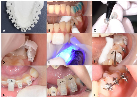 - Hassan, M.S.; Abdelsayed, F.A.; Abdelghany, A.H.; Morse, Z.; Aboulfotouh, M.H. For Indirect Orthodontic Attachment Place-ment, adding a Custom Composite Resin Base Is Not Beneficial: A Split-Mouth Randomized Clinical Trial. Int. J. Dent. 2022, 2022, 9059697. [Google Scholar] [CrossRef]