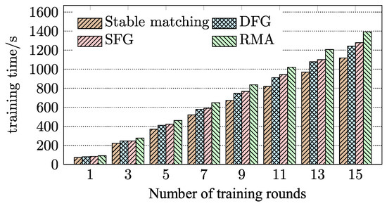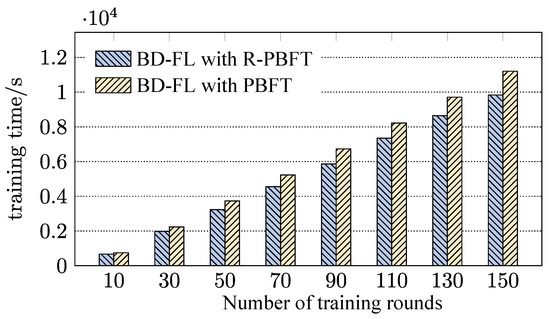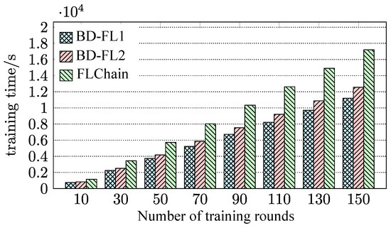 - We performed extensive simulation experiments to evaluate the proposed BD-FL. Experimental results show that BD-FL effectively reduces the model training time by up to 19.7% and 34.9%, respectively, compared with several federated learning methods with different matching algorithms and a state-of-the-art blockchain-based federated learning method. The R-PBFT algorithm can reduce the communication overhead of the consensus process and improve the training efficiency of BD-FL by 12.2%.