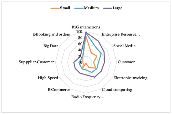 SME gaps in adoption are large in many areas. Source: Authors’ compilation according to [73].
