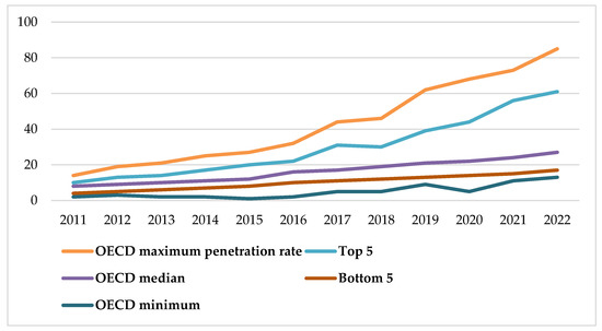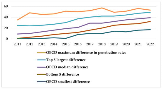 Differences in penetration rates across nations, 2011 to 2022. Source: Adapted from Ref. [77].