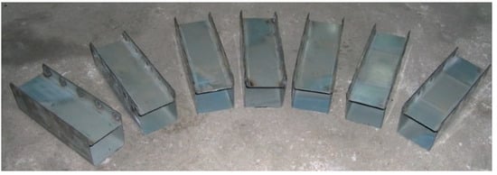 Type T1 specimens were used for the investigation of changes taking place during the longitudinal member repair works under dynamic load. The specimens produced for this investigation consisted of two parts joined by spot welding: a U-shaped chute and a U-shaped wall that closed the contour (Figure 8).