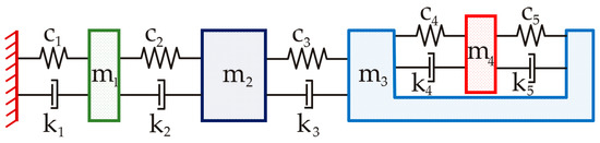 Although the three-mass dynamic model is one of the simplest, it provides a fairly accurate reflection of the key properties of the front crumple zone of a vehicle. The distribution of the model into three zones is conditional. Each part reflects a certain group of elements that includes the assemblies located in the respective zone. The generalized mass of the elements located within the zone is attributed to the respective zone. The methodology for determining the generalized mass is not strictly defined. Usually, it is considered to be the mass of key elements of the zone and the vehicle units/assemblies connected thereto. During the development of the research methodology, the guidelines provided in [48] were applied to the control of mass distribution. That is, the sum of the masses of the first and second zones was about 33% of the vehicle mass, and the mass of the third zone was about 66% of the vehicle mass. The characteristics of the zone, i.e., the rigidity and damping coefficients, were determined in view of the character of connection between the elements (series, parallel, or mixed). The three-mass dynamic model allowed the authors to identify the key weaknesses in the modelling. One of the most important weaknesses was the impossibility of describing zone deformation properties using linear elasticity elements at higher velocities. These elements would only be applicable before the emergence of plastic deformations, for example, when calculating the bumper zone of a US-type vehicle. For this purpose, the methodology for the determination of the element characteristics and the application specifications and efficiency of the four-mass models (Figure 12) had to be adjusted.