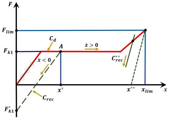 Limitation was set for C** value in order to determine recoverable elastic deformations and not exceed xlim. Additional equation correction was introduced into the calculation of the forces acting on the third element of the crumple zone. In this case, it was assumed that, with the start of deformation of the third element during the collision, front wheels would be blocked due to the vehicle body damages, and the third zone would be under the action of the friction force, the maximum value of which was: