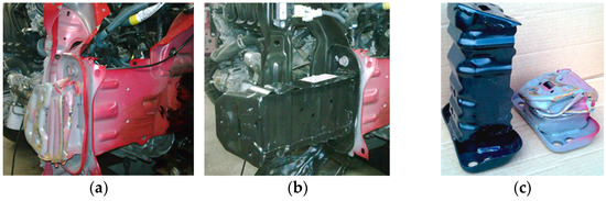 A separate group of effects are those caused by traffic accidents and elimination of its consequences during repair. According to traffic accident statistics, approximately 50% of traffic accidents involve front collisions, and considerable focus is placed on the front crumple zones during the body design process [4,5].