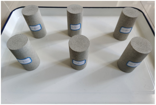 A total of six standard cylindrical specimens with a diameter of 50 mm and a height of 100 mm were made according to the recommendations of the International Society of Rock Mechanics, and the error of non-parallelism at both ends of the specimens was not more than ±0.05 mm. The shape of the specimen is shown in Figure 1.