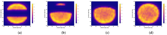 Dividing the field of view of the NGSO satellite into cells with equal size elevation angle and azimuth angle gaps, the range of elevation and azimuth angles of cell are denoted as and , respectively, where and are the lengths of a cell in elevation and azimuth angle and , . In this paper, we considered the splitting scheme such that and were equal and the maximum elevation and azimuth angles were both .