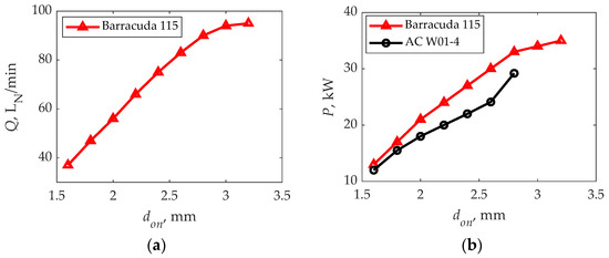 - Highest volumetric flow rate values were obtained for the Matrix HS 211.20 injector; on average, it was 19.6% higher than the Barracuda 115 injector and 35.8% higher than the AC-W01-4 injector;