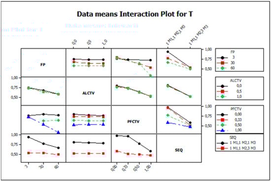 Interaction plot of the input parameters FP, ALCTV, PFCTV, SEQ for T.