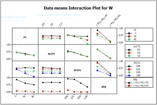 Interaction plot of the input parameters FP, ALCTV, PFCTV, SEQ for W.