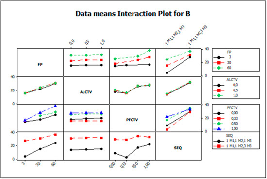 Interaction plot of the input parameters FP, ALCTV, PFCTV, SEQ for B.