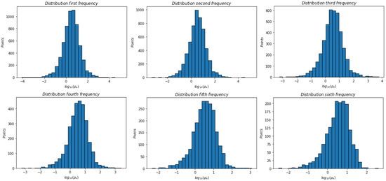 Distribution of the first six frequencies chosen to represent the apparent resistivity curve.