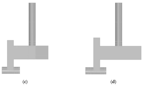 Shapes of tunnel entrance for different entrance slope for Lb/Lw = 1.0. (a) αs = 90° (original); (b) αs = 75°; (c) αs = 60°; (d) αs = 45°.