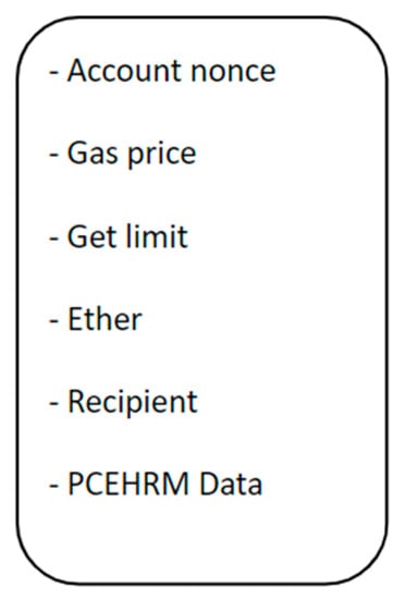 Peer nodes are linked to the application, which then uses smart to update the ledger. Figure 4 shows the data structure of the blockchain ledger after the integration of PCEHRM data fields, as it is intended to record only the information that patients wish to provide in a transaction. Peernode1, Peernode2, and Peernode3 are the three peer nodes in the organization, and each one has a copy of the ledger and a smart contract.