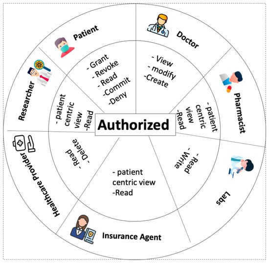 Data users are defined as the parties that require patients’ medical or clinical records for further action, namely, hospitals, researchers, insurance companies, and doctors. In this context, the role-based access control approach in PCEHRM-SC specifies the mechanism for patients to grant access rights to data users.