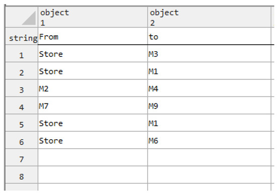 The pseudo code of the unloading program is shown in Table 5. Here, TUL is the unloading time of the AGVs, Mj is the station of number j, AGV_Task is the AGV dynamic task list, and cutRow is the order to delete a row in the AGV dynamic task list.