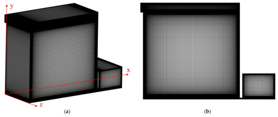 Ventilation refers to achieving a comfortable, economical, and healthy environment by regulating indoor air qualities such as air velocity, temperature, and concentration of pollutants in the air. Therefore, accurate prediction of ventilation performance is crucial to improve indoor air quality. Appropriate tools must be in place to predict building ventilation performance. Over the past three decades, there have been many prevalent approaches to predicting ventilation performance, such as analytical models [1,2,3], empirical models [4,5], experimental measurement models [6,7,8,9,10,11,12], and computational fluid dynamics (CFD) models [13,14,15,16,17,18,19,20,21]. With the development of numerical simulation algorithms and the increase in computing power, the CFD models are more widely used in predicting ventilation performance. The CFD algorithms solve the transport equations of physical quantities of fluid, and many different CFD algorithms are applied in the prediction of ventilation performance, such as RANS (Reynolds-averaged Navier–Stokes) simulations [20,21], LES (large eddy simulations) [22,23], and DNS (direct numerical simulations) [24,25]. However, LES and DNS cost too much in computing resources. Hence, RANS simulations are widely used in the prediction of ventilation performance.