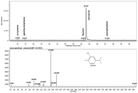 Oregano essential oil has a complex composition, with the main compounds being carvacrol, p-cymene, and γ-terpinene (Figure 1).